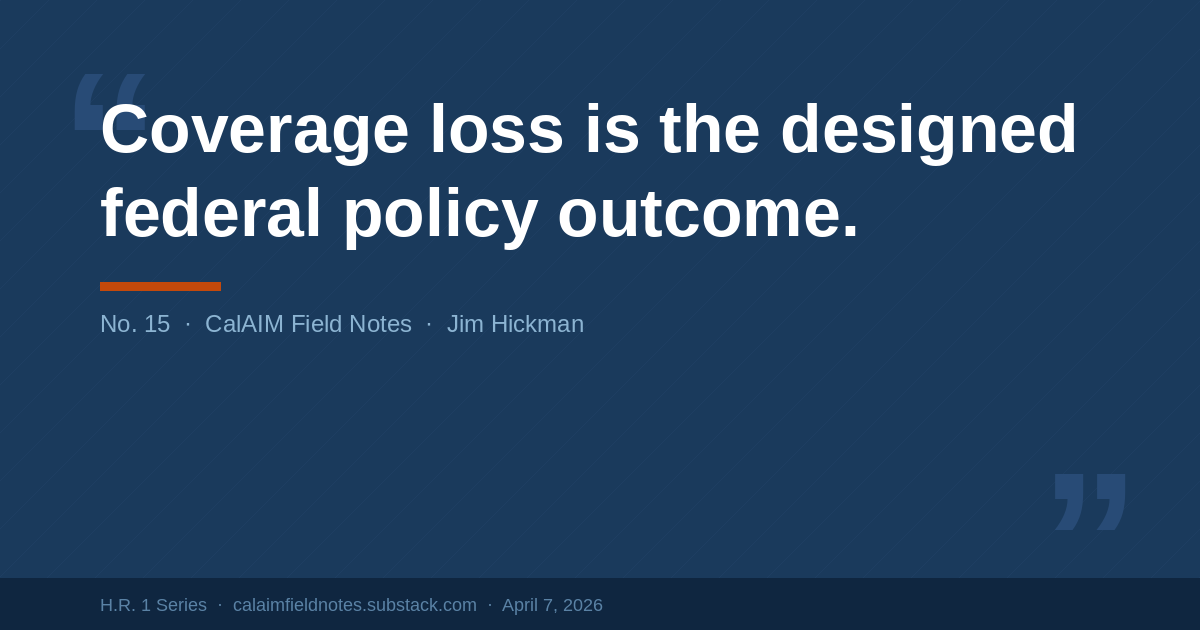 Not for everyone. Not even for most people at risk. But for a meaningful portion of the 2.8 million, this is not a documentation failure or a navigation gap. It is what H.R. 1 Section 71119 was written to produce. Naming that clearly is not defeat. It’s what we owe the field.